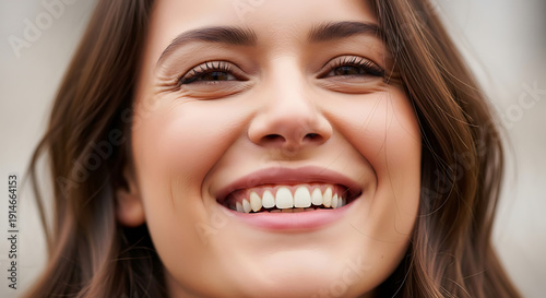 Close-up portrait of a smiling young woman with beautiful teeth.