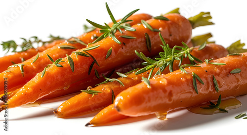Roasted glazed carrot spears with caramelized edges. Isolated on White background