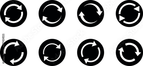Eight identical circular arrows in two rows on a white background