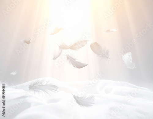 天使の羽が舞う神秘的な光の空間 神聖 スピリチュアル 愛と癒しのエネルギー
