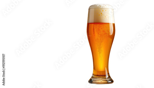 Beer glass isolated on white background premium lager drink cutout high resolution studio photo for product display and beverage advertising