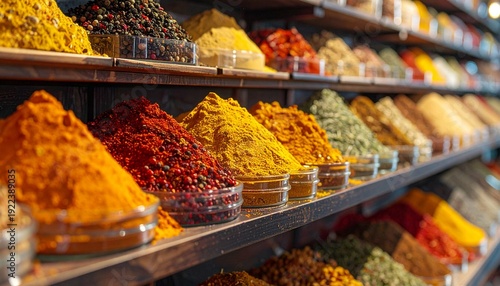 Vibrant Display of Spices in a Market Stall Adds Color and Texture to the Exotic Scene.