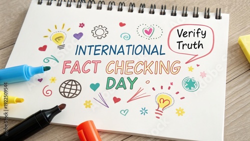 International Fact Checking Day Doodle on Notebook Page