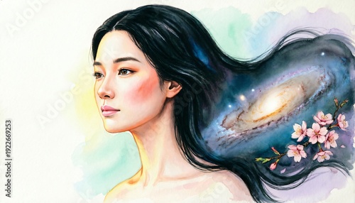 Dea dell'universo: arte fantastica con colori vivaci e cosmici
