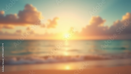 Blurred Summer Beach Background with Sunset Sky and Clouds in Vintage Tone