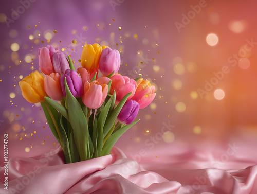 Kartka na międzynarodowy dzień kobiet. Kolorowy bukiet tulipanów