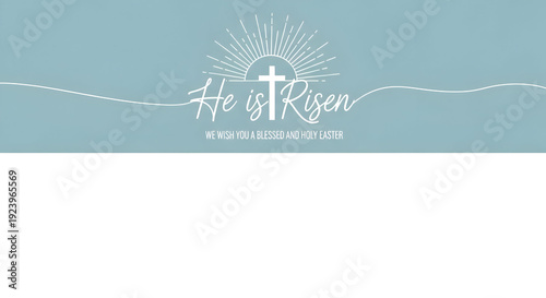 Serene Easter greeting with radiant cross and gentle script, wishing a blessed and holy Easter season, digital art