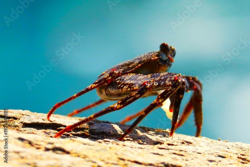 sylwetka kraba na kamieniu na tle błękitnego nieba, super zdjęcie.