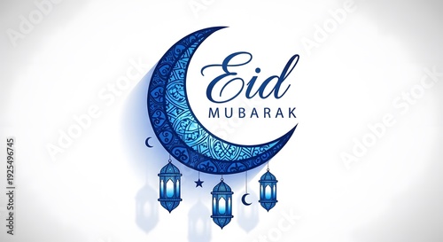 Eid Mubarak wishes greetings Islamic festival moon lanterns decor