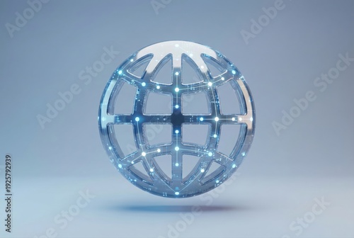 Futuristic globe symbolizing digital connectivity and global networking illuminated by blue lights representing innovation and technology trends in a modern landscape
