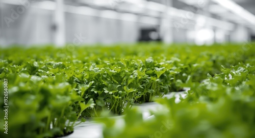 Vivid green celery plants prospering in an eco friendly hydroponic farm
