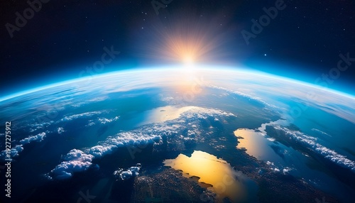 Earth Seen From Space With Sunlight Touching Its Edge The Blue Of The Sea The White Of The Clouds And The Dark Expanse Of Space Create A Stunning Contrast