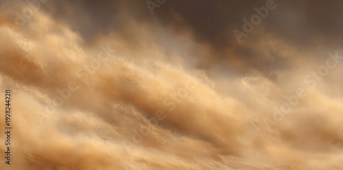Potężna chmura pyłu i piasku unosząca się podczas gwałtownej burzy piaskowej na pustyni pod ciemnym, zachmurzonym niebem w czasie upału.