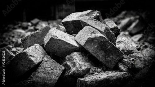 Pile of scattered concrete chunks and metal fragments representing demolition debris at a construction site.