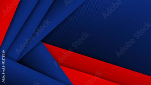 Abstract geometric background with blue and red overlapping layers and diagonal line textures for professional business presentation