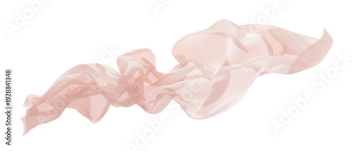 luxury soft peach chiffon sheer fabric flowing in the wind isolated on transparent background design element for fashion, cosmetic branding and wedding 3D render
