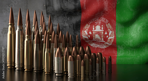 Afghanistan - various projectiles and national flag - 3D illustration