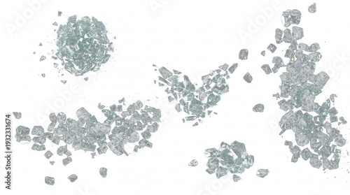 scattered shards of transparent glass suspended mid-air against a solid transparent background, creating a dynamic and abstract composition, high detail, studio lighting, realistic render.
