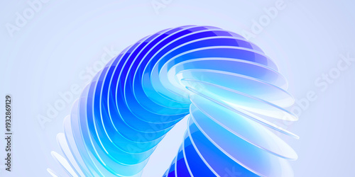 3D render of a blue circular glass spiral with a transparent background. abstract geometric background features translucent plates and a soft gradient, perfect for modern tech design, creative concept