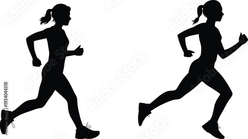 Female runner silhouette vector illustration, woman jogging in motion, fitness training and healthy lifestyle concept, black and white sports design