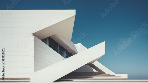 Architecture moderne minimaliste aux lignes géométriques blanches