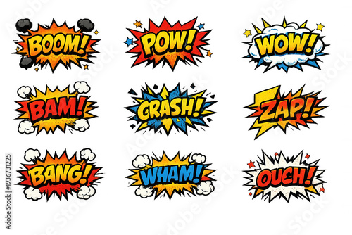 Comic sound effect word collection PNG boom pow zap bang crash speech bubbles transparent cut out set