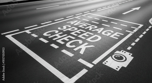 Road Marking Indicating Average Speed Control Camera Location On The Road Surface
