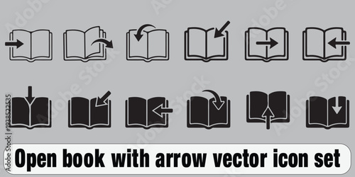 Open book with arrow vector icon set