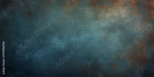 A dark vintage blue grunge background featuring an aged wall texture with smoke and fog patterns on a dirty metal surface illustration