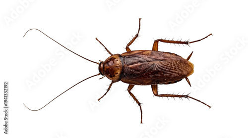 Isolated american cockroach on black, brown insect pest with long antennae and legs, detailed view for biology and entomology studies