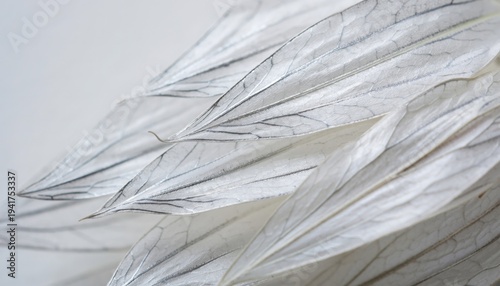 Extreme macro texture of translucent white skeleton leaves with delicate dark veins