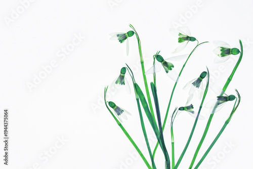 Przebiśniegi w efekcie rentgena na jasnym tle z miejscem na tekst – botaniczna struktura kwiatów