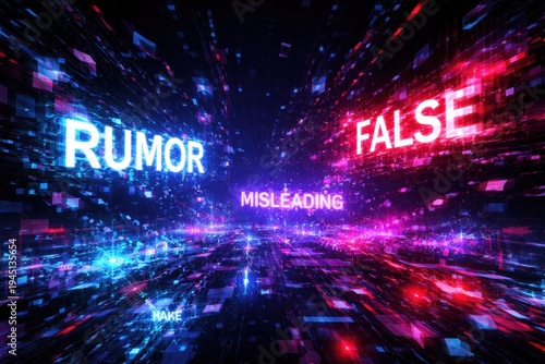 Digital abstract representing the spread of misinformation, fake news, and rumors