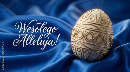 Pisanka Wielkanocna, zdobiona na niebieskim tle