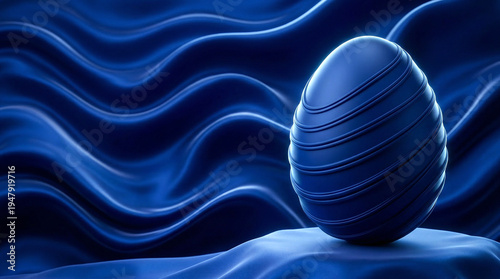 Pisanka Wielkanocna, zdobiona na niebieskim tle
