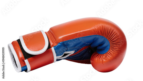 Vibrant orange and blue boxing glove, a powerful piece of combat sports equipment, isolated PNG on transparent background