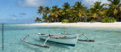 Outrigger Boat in Crystal Clear Lagoon Cook Islands
