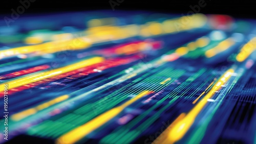 Abstrakte Neonlichtstreifen in einem futuristischen Technologiekonzept für Geschäftsinnovationen