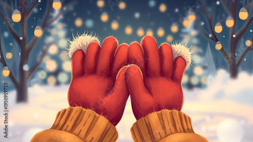 Cozy winter gloves with cute pompom details cherished moments cartoon style warm environment whimsical viewpoint