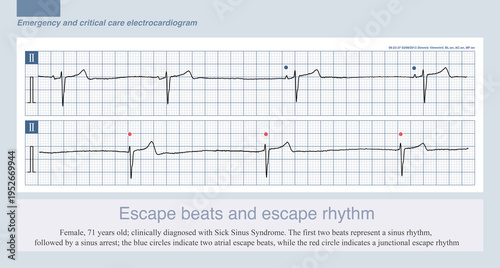 During slow ventricular rhythms, various escape beats and escape rhythms may sometimes occur, including atrial, junctional and ventricular escape beats and their corresponding rhythms.