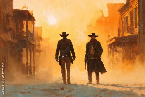 Painterly portrait of a lawman and a notorious bandit in vintage western attire