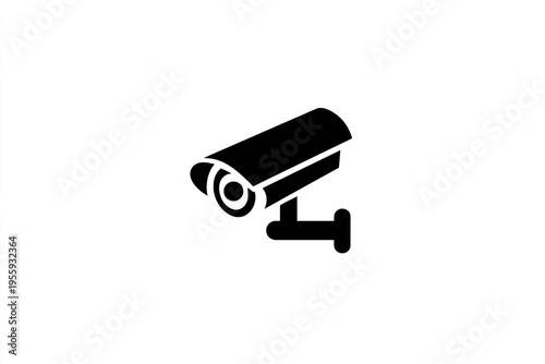 Security camera icon in black and white, surveillance concept for monitoring, safety and protection in public or private areas with modern technology equipment.