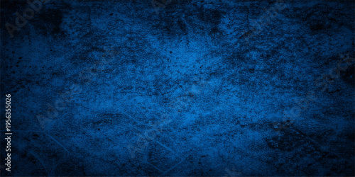 A dark blue grunge texture with a rough aged surface and vintage paint patterns creates a blank retro wall backdrop for an artistic design