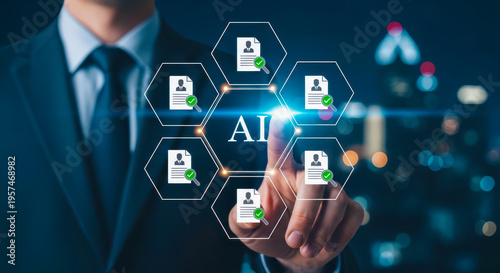 A man in a suit interacting with an ai interface