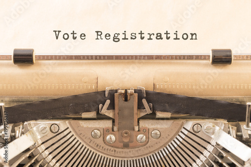 printed on the Vote Registration paper. vintage typewriter.