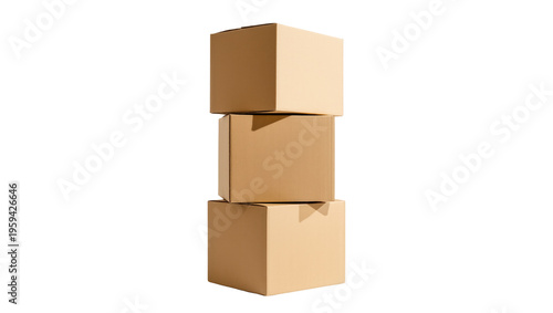 Three brown corrugated cardboard boxes stacked vertically for shipping or storage