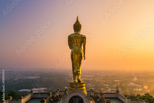 Golden Buddha Statue Beyond Nan City in the Morning, Thailand
