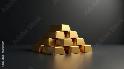 Barras de oro apiladas en una elegante y moderna formación piramidal