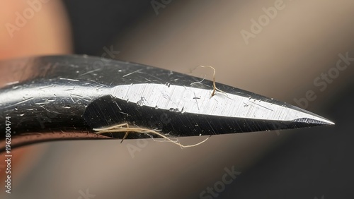 Macro shot of tweezers grasping fine hair showing precision extraction