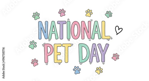 National Pet Day Celebration with Paw Prints and Heart Illustration.